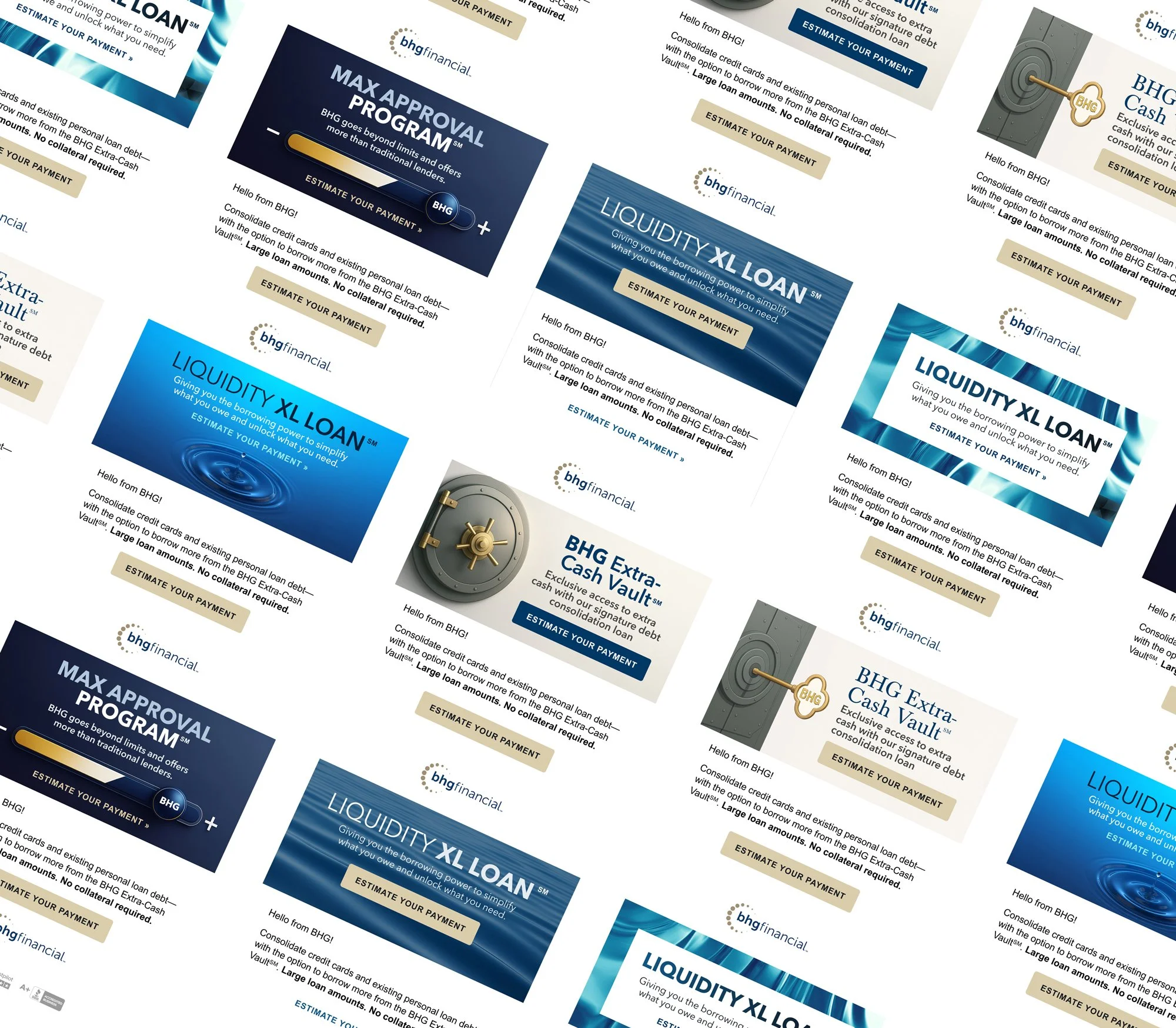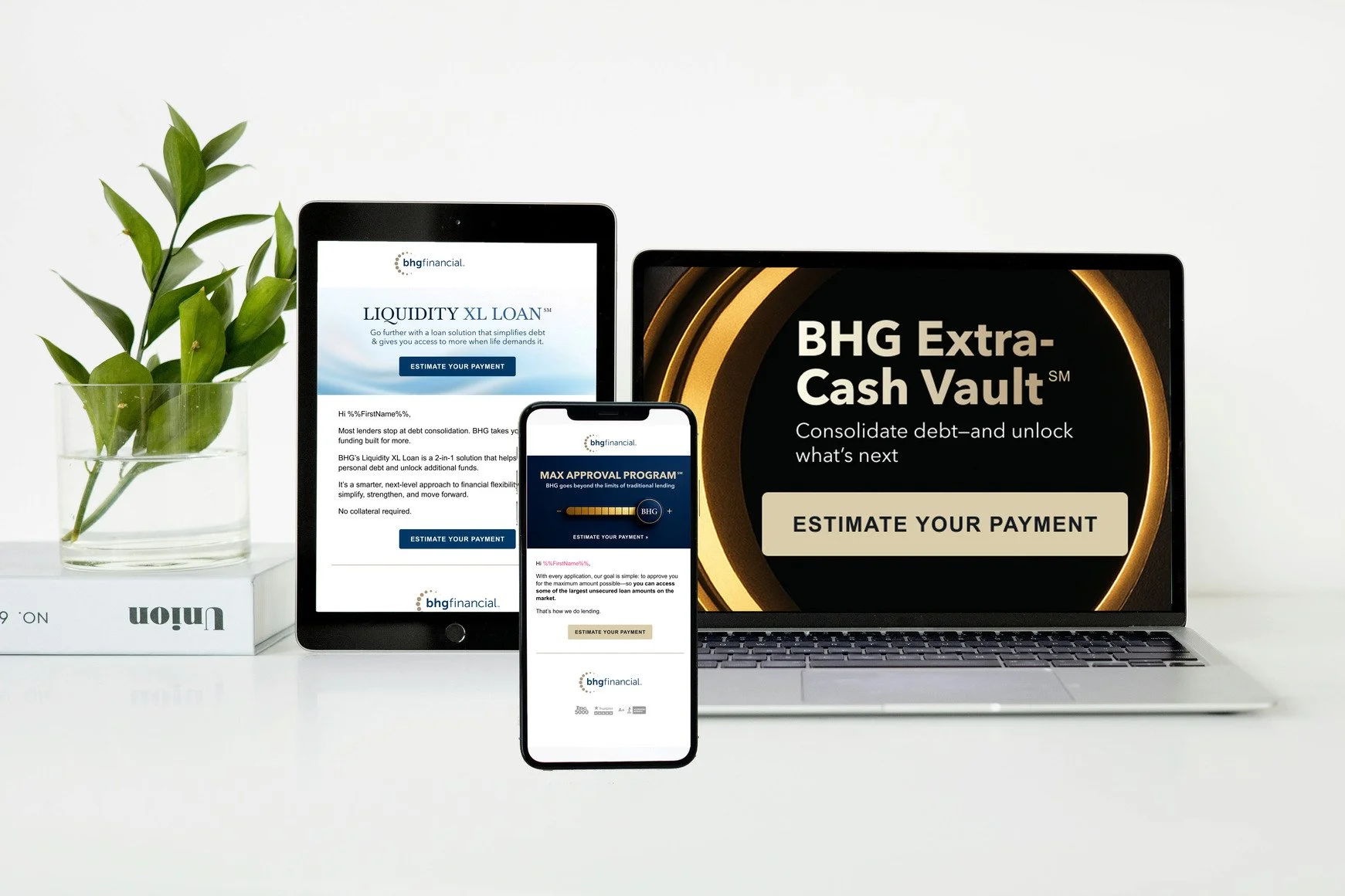 To strengthen BHG Financial’s direct-to-consumer lending efforts, we developed a value-focused campaign highlighting personal loans up to $250,000. This initiative aimed to simplify the product message, elevate perceived value, and help prospects quickly understand the benefits and accessibility of higher-limit financing.